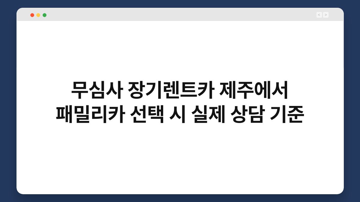 ✅ 제주에서 패밀리카를 선택할 때 고려해야 할 요소