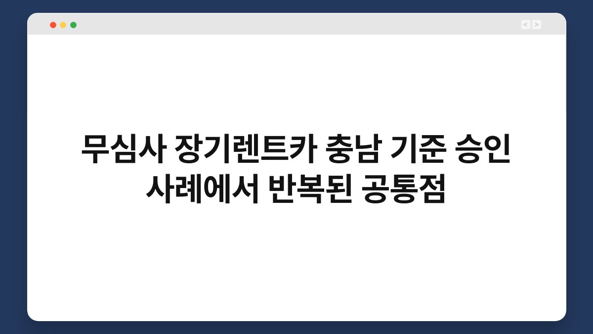 차량을 장기 렌트하는 것은 많은 분들에게 매력적인 선택이죠. 특히 충남에서 무심사 장기렌트카를 이용할 때 기준 승인 사례를 통해 어떤 공통점이 있는지 알아보면, 더 많은 정보와 혜택을 누릴 수 있습니다. 이번 글에서는 황제오토플랜과 함께 이 주제를 깊이 있게 다뤄보겠습니다. 무심사 장기렌트카의 장점과 승인 사례에서 발견되는 패턴을 통해, 여러분의 렌트카 선택에 도움이 될 만한 정보를 제공할게요.