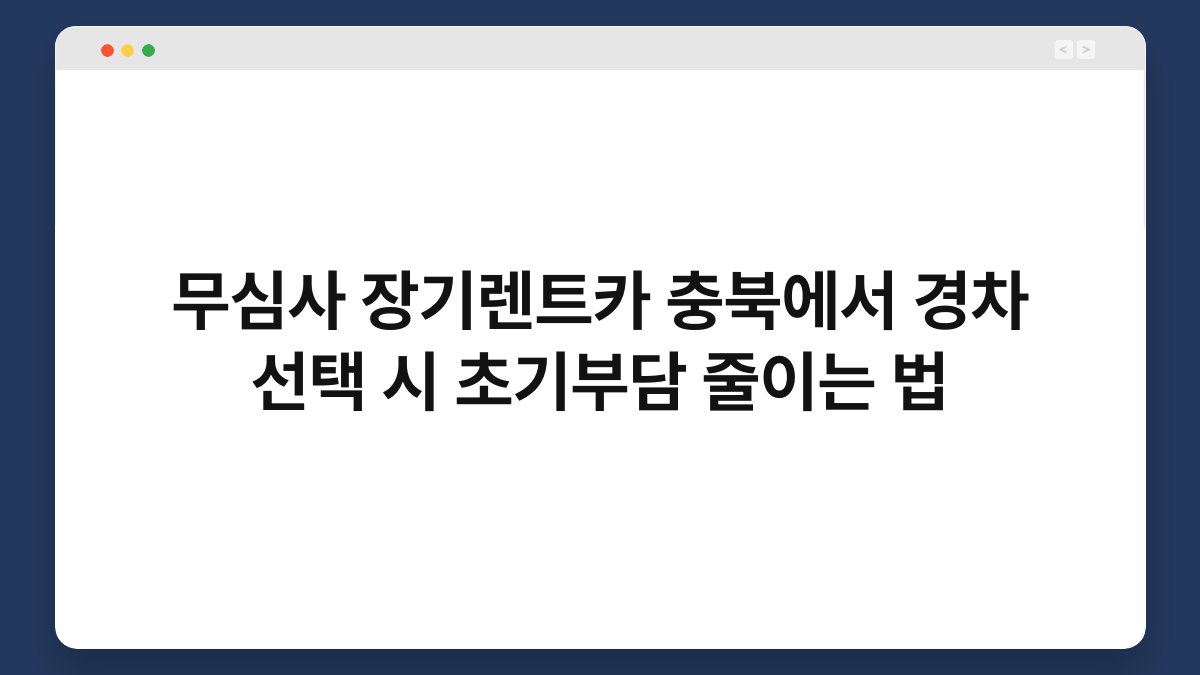 자동차를 소유하는 것은 많은 이들에게 큰 부담이 될 수 있습니다. 특히 초기 비용이 부담스러운 분들에게는 장기렌트카가 훌륭한 대안이 될 수 있습니다. 충북에서 경차를 선택할 때 초기 부담을 줄이는 방법에 대해 알아보겠습니다. 황제오토플랜을 통해 무심사 장기렌트카를 이용하면 더욱 유리한 조건으로 차량을 이용할 수 있습니다. 이 글에서는 경차 선택 시 고려해야 할 사항과 함께 비용 절감 노하우를 소개합니다.