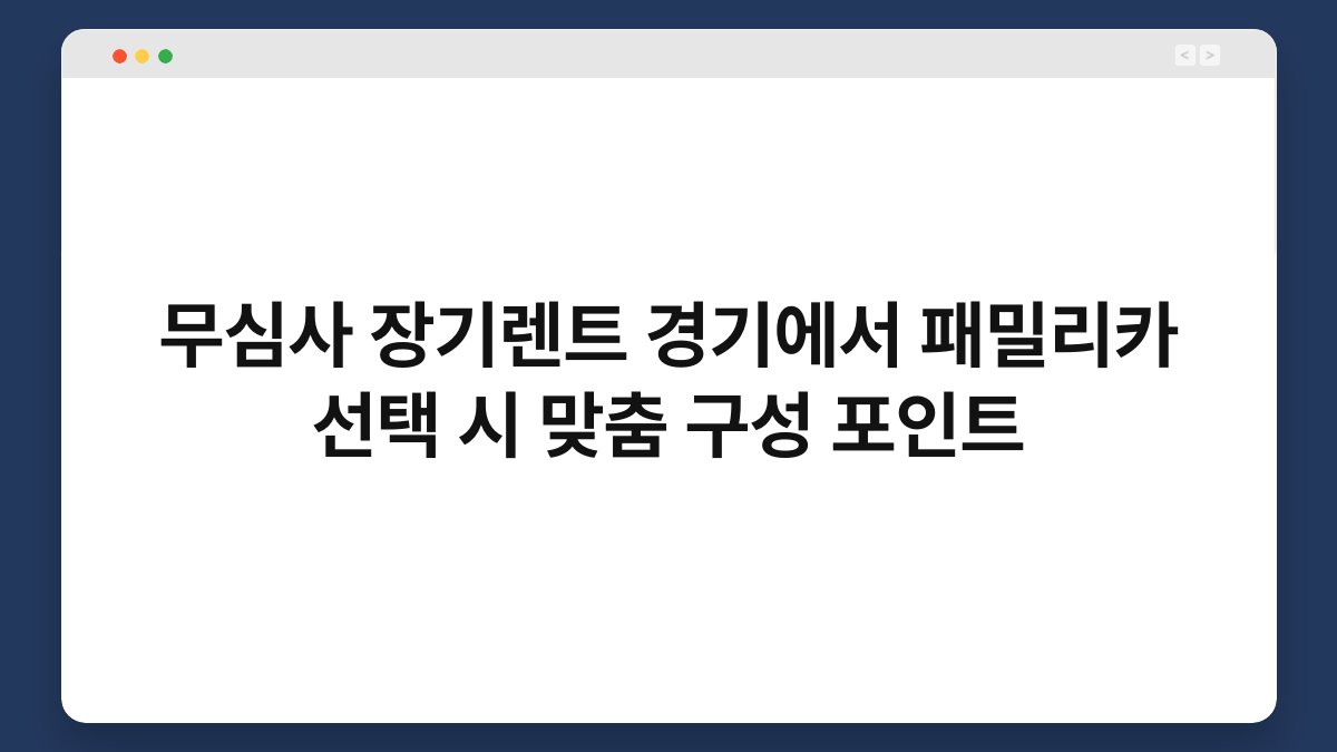 차량을 선택할 때 많은 분들이 고민하는 부분이 바로 ‘패밀리카’입니다. 특히 무심사 장기렌트로 차량을 이용하려는 분들에게는 더욱 중요한 결정이 되죠. 가족의 안전과 편안함을 고려하면서도 경제적인 선택을 해야 하니까요. 오늘은 경기 지역에서 패밀리카를 선택할 때 유용한 맞춤 구성 포인트에 대해 알아보겠습니다. 황제오토플랜을 통해 이러한 선택을 보다 쉽게 할 수 있는 방법도 함께 소개할게요.