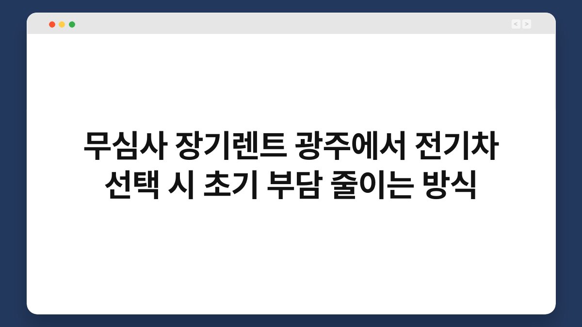 전기차의 인기가 날로 높아지고 있습니다. 특히 광주에서 무심사 장기렌트를 고려하는 분들께는 초기 부담을 줄이는 방법이 중요합니다. 이 글에서는 전기차 선택 시 장기렌트의 장점과 황제오토플랜의 다양한 옵션을 통해 어떻게 초기 비용을 절감할 수 있는지 살펴보겠습니다. 여러분의 전기차 선택에 도움이 될 유용한 정보가 가득하니 끝까지 함께해 주세요.