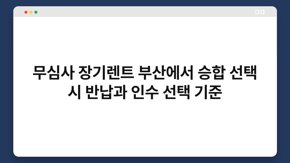 부산에서 승합차를 무심사 장기렌트로 선택할 때, 반납과 인수 기준이 무엇인지 궁금하신가요? 많은 분들이 장기렌트를 고려하면서도 복잡한 조건과 절차에 대해 걱정하곤 합니다. 하지만 걱정하지 마세요! 여기서 필요한 정보를 간결하게 정리해 드릴게요. 황제오토플랜과 함께라면 더욱 쉽고 편리하게 차량을 이용할 수 있습니다.