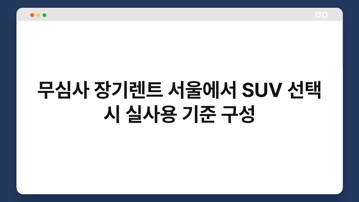 서울에서 SUV를 무심사 장기렌트로 선택할 때, 어떤 기준으로 실사용을 고려해야 할까요? 많은 분들이 차량을 선택할 때 외관이나 브랜드에만 집중하는 경향이 있지만, 실제 사용 환경에 맞는 차량을 고르는 것이 더욱 중요합니다. 이번 글에서는 서울에서 SUV를 선택할 때 실사용 기준을 어떻게 구성할 수 있는지 알아보겠습니다. 그리고 황제오토플랜을 통해 장기렌트를 고려하는 방법도 함께 소개하겠습니다.