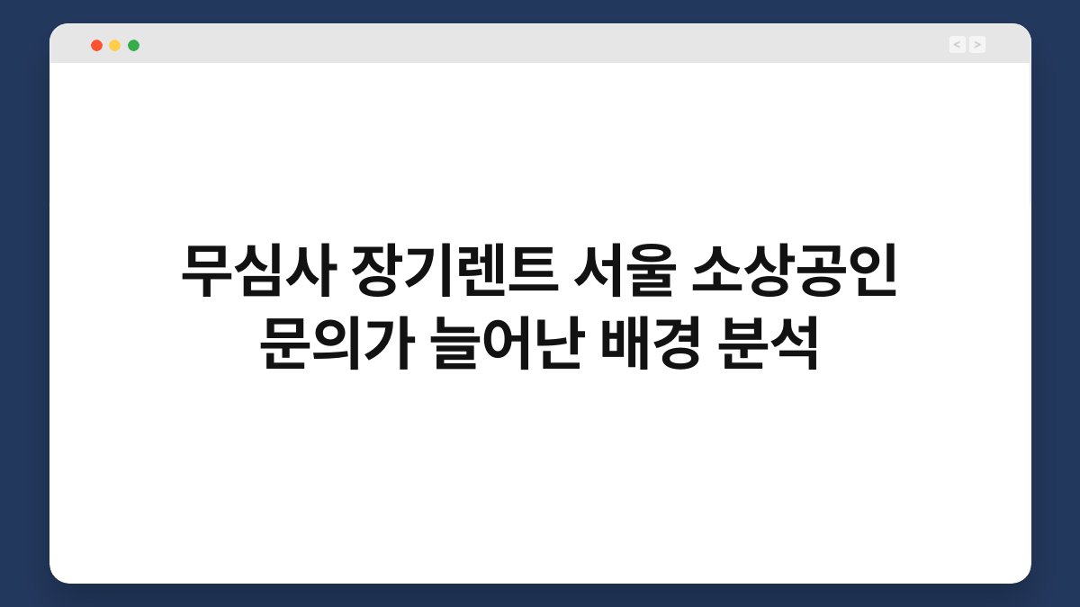 서울에서 소상공인들의 무심사 장기렌트에 대한 문의가 급증하고 있습니다. 이 변화는 여러 가지 요인에 의해 촉발되었는데요, 특히 경제적 불확실성과 차량 소유의 부담을 덜고자 하는 소상공인들의 니즈가 크게 작용하고 있습니다. 오늘은 이러한 현상의 배경을 분석하고, 황제오토플랜을 통해 무심사 장기렌트를 활용하는 방법에 대해 알아보겠습니다. 차량을 소유하는 것보다 렌트를 통해 더 유연하게 사업을 운영할 수 있는 기회를 제공하는 것이죠. 이 글을 통해 무심사 장기렌트의 장점과 황제오토플랜의 서비스를 살펴보세요.