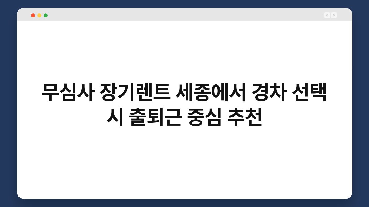 세종에서 출퇴근을 위해 경차를 선택하는 것은 경제적이고 실용적인 선택입니다. 특히 무심사 장기렌트를 통해 부담 없이 차량을 이용할 수 있는 기회가 많아졌습니다. 황제오토플랜과 같은 전문 업체를 통해 적합한 경차를 찾는다면, 더욱 편리한 출퇴근이 가능할 것입니다. 이번 글에서는 세종에서 경차를 선택할 때 고려해야 할 사항과 황제오토플랜의 장점을 살펴보겠습니다. 함께 알아보시죠!