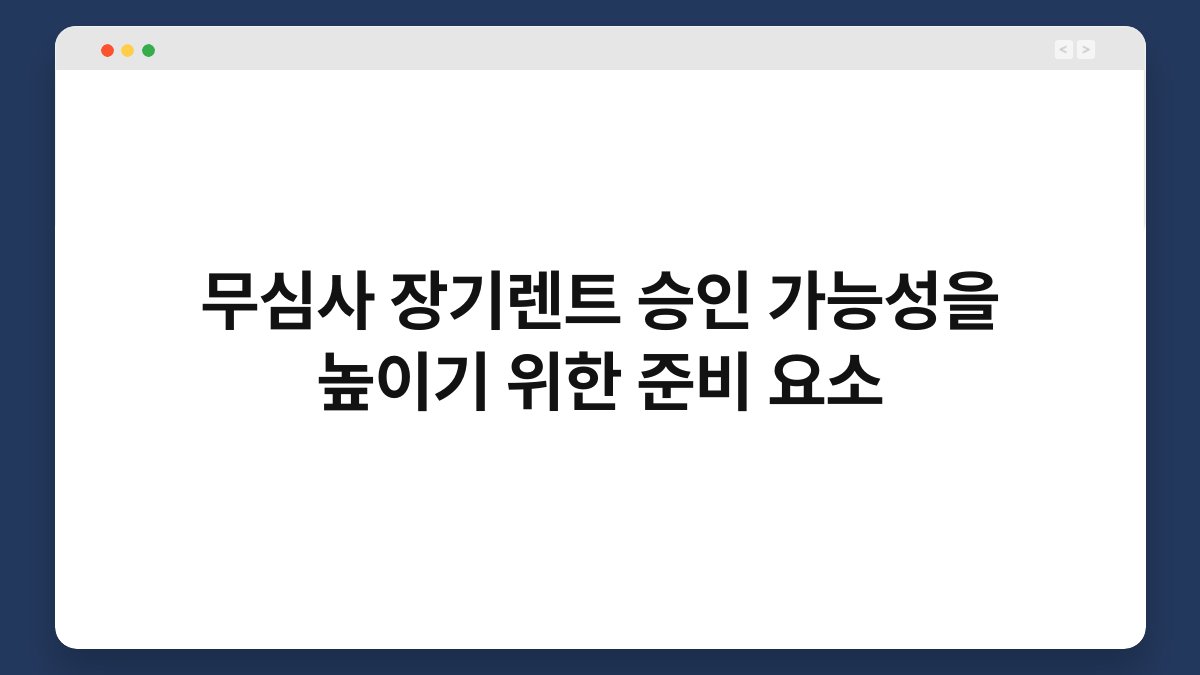 장기렌트 차량을 무심사로 이용하고 싶으신가요? 많은 분들이 신용 문제로 고민하지만, 승인 가능성을 높일 수 있는 방법이 있습니다. 본 글에서는 무심사 장기렌트 승인을 위한 준비 요소를 소개하며, 황제오토플랜과 함께하는 장기렌트의 장점을 살펴보겠습니다. 여러분의 차량 이용이 보다 수월해질 수 있도록 유용한 정보를 제공할 테니, 끝까지 함께해 주세요.
