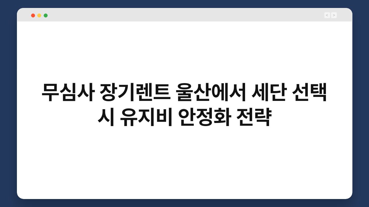 울산에서 무심사 장기렌트를 고려하고 계신다면, 황제오토플랜이 최적의 선택이 될 것입니다. 저신용 장기렌트의 조건과 장점, 그리고 차량 유지비 안정화 전략을 통해 경제적인 부담을 줄여보세요. 황제오토플랜은 차량 관리와 관련된 다양한 정보와 서비스를 제공하니, 언제든지 상담해 주시면 좋습니다. 문의는 전화 1600-4552로 하시거나, 카카오톡 문의를 이용해 주세요. 더 많은 정보는 황제오토플랜 웹사이트와 황제오토플랜 블로그를 방문해 주시면 됩니다.