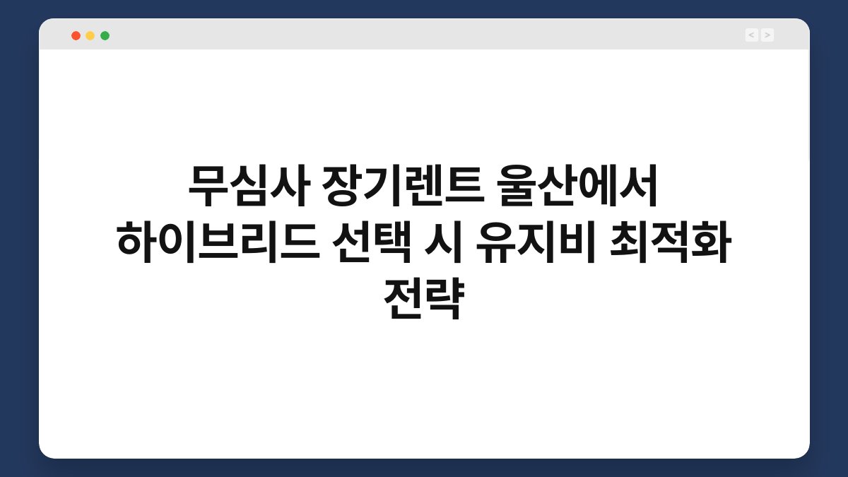 자동차를 선택할 때, 특히 장기렌트를 고려하는 분들께는 여러 가지 요소가 중요합니다. 특히 울산에서 하이브리드 차량을 선택할 경우 유지비를 최적화하는 전략이 필요합니다. 많은 분들이 무심사 장기렌트의 혜택을 통해 경제적인 부담을 줄이려 하지만, 실제로 어떤 방법이 효과적인지에 대한 정보는 부족할 수 있습니다. 이 글에서는 하이브리드 차량의 장점과 유지비 절감을 위한 팁을 소개하며, 황제오토플랜의 도움을 통해 최적의 선택을 할 수 있도록 안내하겠습니다.