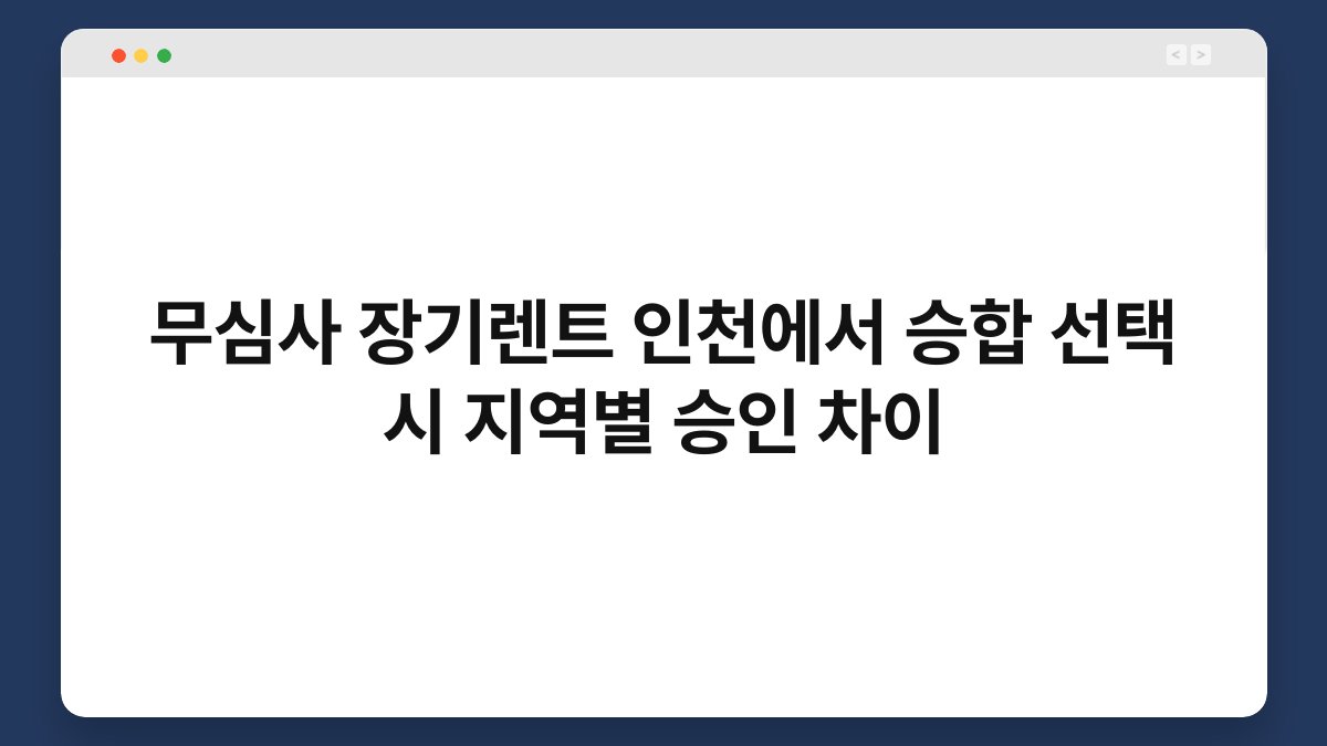 인천에서 무심사 장기렌트를 고려하고 계신가요? 승합차를 선택할 때 지역별 승인 차이가 있다는 사실, 알고 계셨나요? 차량을 렌트하는 과정에서 승인 여부는 매우 중요한 요소입니다. 특히 인천에서는 지역 특성에 따라 승인 조건이 달라질 수 있습니다. 이 글에서는 무심사 장기렌트의 승인 차이와 함께 황제오토플랜의 장점을 알아보겠습니다. 함께 살펴보며 필요한 정보를 얻어보세요!