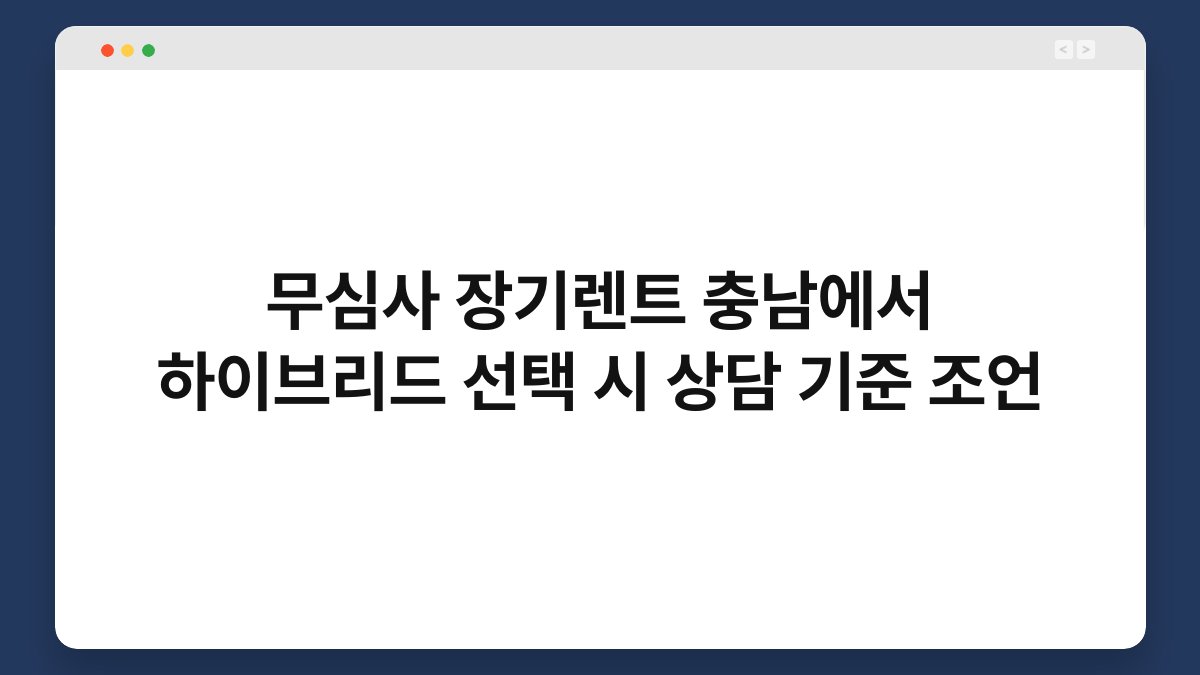 충남에서 하이브리드 차량을 무심사 장기렌트 하려는 분들, 어떤 기준으로 상담을 받아야 할지 고민되시죠? 차량 선택은 물론, 렌트 조건이나 신용 등급에 따라 달라지는 비용까지 여러 요소를 고려해야 합니다. 하지만 걱정하지 마세요. 황제오토플랜이 여러분의 고민을 해결해 줄 수 있습니다. 이 글에서는 장기렌트 상담 시 유용한 조언과 함께, 하이브리드 차량 선택의 장점을 소개하겠습니다.