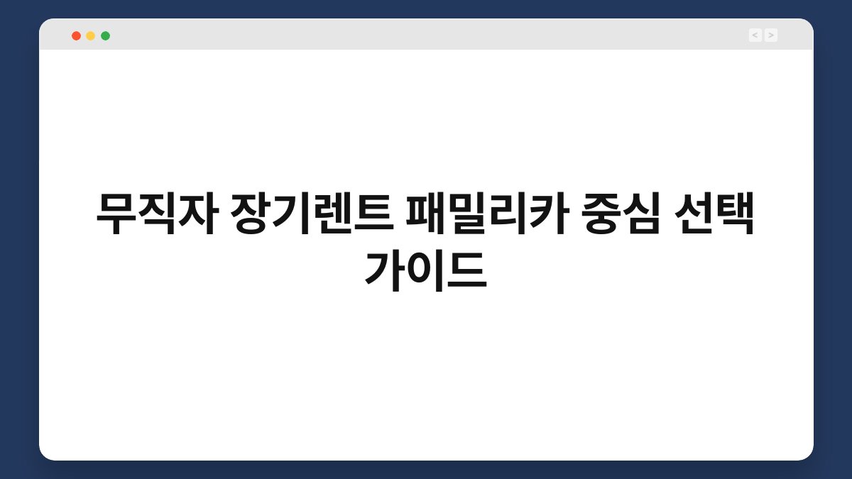 장기렌트, 특히 무직자에게 패밀리카를 선택하는 것은 간단한 일이 아닙니다. 하지만 걱정하지 마세요. 오늘은 무직자도 쉽게 접근할 수 있는 장기렌트 옵션과, 패밀리카 선택 시 고려해야 할 포인트를 알려드릴게요. 황제오토플랜과 함께라면 더 쉽고, 합리적인 결정을 내릴 수 있습니다. 이 글을 통해 장기렌트의 장점과 황제오토플랜의 서비스에 대해 알아보세요.