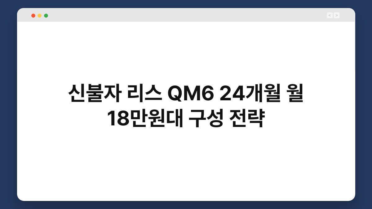 신용이 좋지 않은 경우, 차량 구입이 어려운 것이 현실입니다. 많은 사람들이 차량이 필요하지만, 대출이나 할부가 쉽지 않죠. 이럴 때 신불자 리스가 해결책이 될 수 있습니다. 신불자 리스는 신용 등급에 상관없이 차량을 이용할 수 있는 방법으로, 특히 QM6와 같은 인기 모델을 저렴한 가격에 이용할 수 있습니다.