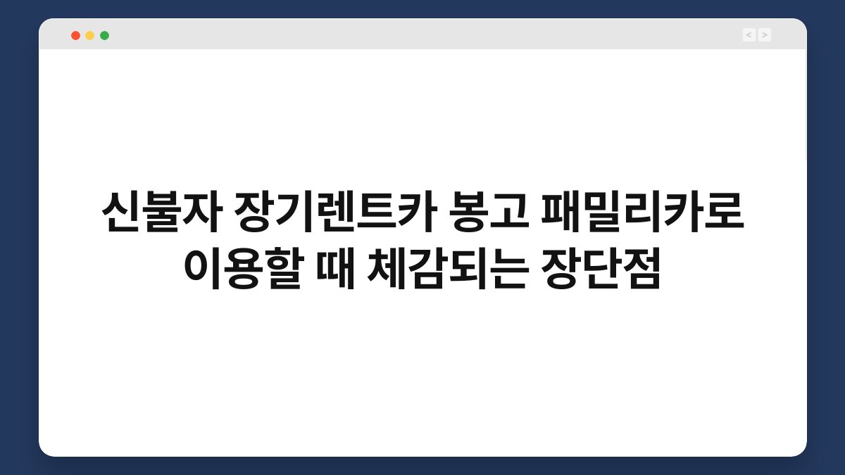 운전 중에 편안하게 가족과 함께 여행을 즐기고 싶으신가요? 신불자라도 장기렌트카를 통해 봉고 패밀리카를 이용할 수 있는 방법이 있습니다. 이번 글에서는 신불자가 장기렌트카를 이용할 때 느끼는 장단점에 대해 알아보겠습니다. 특히 황제오토플랜과 함께라면 더욱 유리한 조건으로 차량을 이용할 수 있다는 사실도 함께 소개할게요. 함께 살펴보시죠!