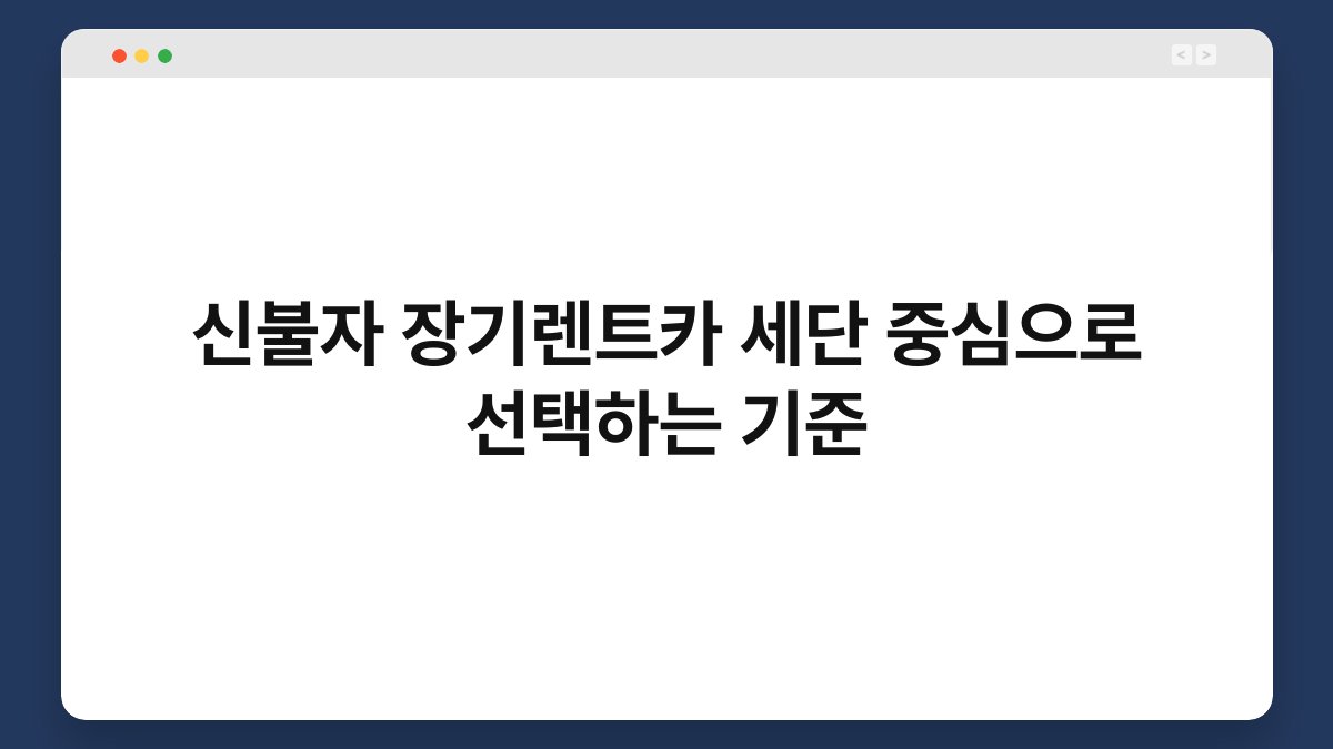 차량을 소유하고 싶지만 신용 문제로 고민하는 분들, 특히 신불자분들에게 장기렌트카는 훌륭한 대안이 될 수 있습니다. 세단 중심으로 선택하는 기준에 대해 알아보면, 더욱 현명한 결정을 할 수 있을 것입니다. 황제오토플랜은 이러한 장기렌트카 선택에 도움을 줄 수 있는 믿음직한 파트너입니다. 이 글에서는 신불자를 위한 장기렌트카 선택 시 고려해야 할 요소들을 살펴보겠습니다. 함께 읽어보시죠!