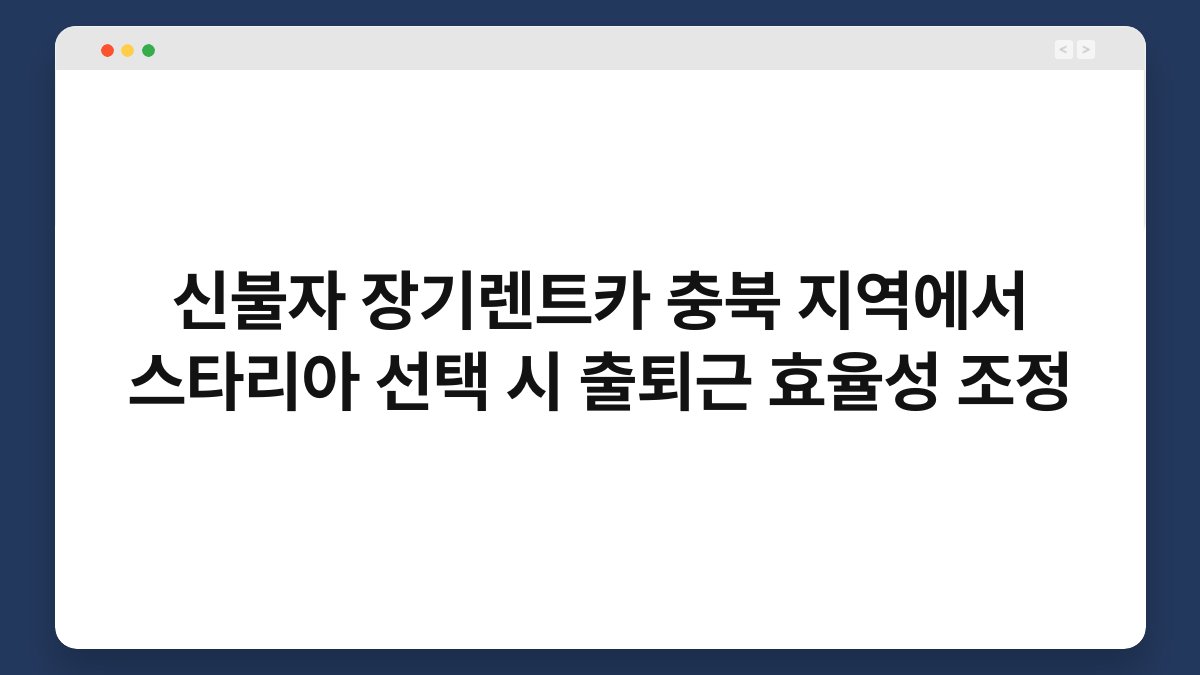 출퇴근길, 매일 반복되는 일상 속에서 효율성을 높이는 방법을 찾고 계신가요? 특히 충북 지역에서 신불자분들이 장기렌트카를 통해 스타리아를 선택하면 어떤 장점이 있을지 궁금하실 겁니다. 오늘은 이와 관련된 정보와 함께 황제오토플랜의 장기렌트 서비스를 소개해드리겠습니다. 장기렌트카는 경제적 부담을 줄이고, 출퇴근 시간을 효율적으로 관리하는 데 큰 도움이 됩니다. 이제 스타리아와 함께 출퇴근 효율성을 높여보세요!