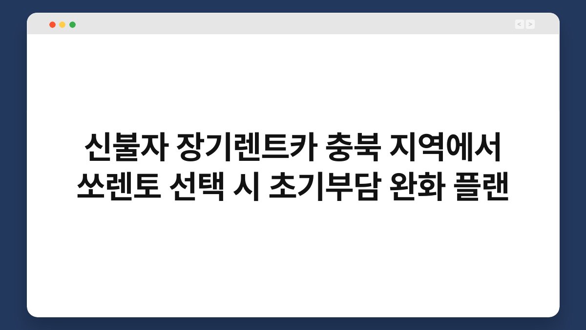 신용이 낮아 차량 구매가 어려운 분들에게 장기렌트카는 좋은 대안이 될 수 있습니다. 특히 충북 지역에서 쏘렌토를 선택할 때, 초기 부담을 줄이는 다양한 플랜이 존재합니다. 황제오토플랜은 이러한 솔루션을 제공하며, 신불자 분들도 부담 없이 차량을 이용할 수 있도록 돕고 있습니다. 이 글에서는 신불자 장기렌트카의 장점과 충북 지역에서 쏘렌토를 선택할 때의 초기 부담 완화 플랜에 대해 자세히 알아보겠습니다. 여러분의 차량 선택에 도움이 되는 유용한 정보가 가득하니 끝까지 함께해 주세요.