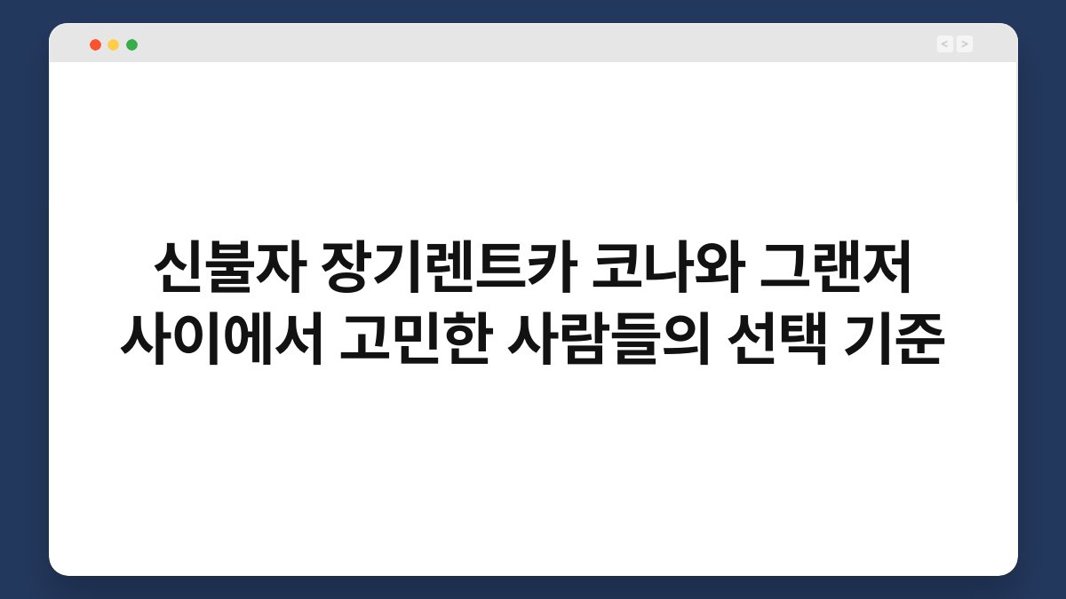 장기렌트카를 선택할 때, 신불자에게는 특히 더 많은 고민이 따릅니다. 특히 현대의 인기 모델인 코나와 그랜저 사이에서 어떤 차량을 선택해야 할지 고민하는 분들이 많습니다. 이 글에서는 신불자들이 장기렌트카를 선택할 때 고려해야 할 기준을 살펴보고, 황제오토플랜의 장점을 함께 알아보겠습니다. 두 차량의 특징과 장단점을 비교하며, 여러분의 선택에 도움이 될 수 있는 정보를 제공할 예정입니다.