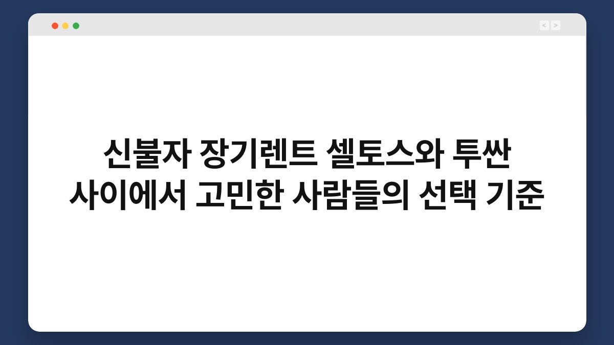 신불자 장기렌트, 차량 선택에 고민이 많으시죠? 특히 셀토스와 투싼 사이에서 어떤 기준으로 선택해야 할지 고민하는 분들이 많습니다. 이 글에서는 신불자 장기렌트를 고려하는 분들이 셀토스와 투싼을 비교하며 어떤 선택 기준을 갖는지 살펴보겠습니다. 또한, 황제오토플랜의 도움을 통해 더욱 유리한 조건으로 차량을 이용할 수 있는 방법도 소개할 예정입니다. 마지막까지 함께해 주시면, 신뢰할 수 있는 정보가 가득하니 놓치지 마세요!