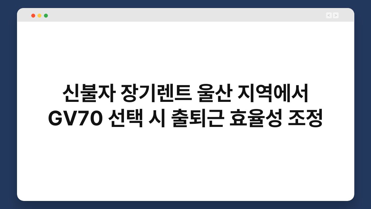 출퇴근, 특히 차량을 이용하는 분들에게는 효율성이 매우 중요합니다. 울산 지역에서 신불자 장기렌트를 고려할 때, GV70은 훌륭한 선택이 될 수 있습니다. 이 차량은 고급스러운 디자인과 뛰어난 성능을 자랑하며, 출퇴근의 편리함을 더해줍니다. 특히 황제오토플랜을 통해 장기렌트를 이용하면 다양한 혜택을 누릴 수 있습니다. 이 글에서는 GV70을 선택했을 때의 출퇴근 효율성을 조정하는 방법에 대해 알아보겠습니다.