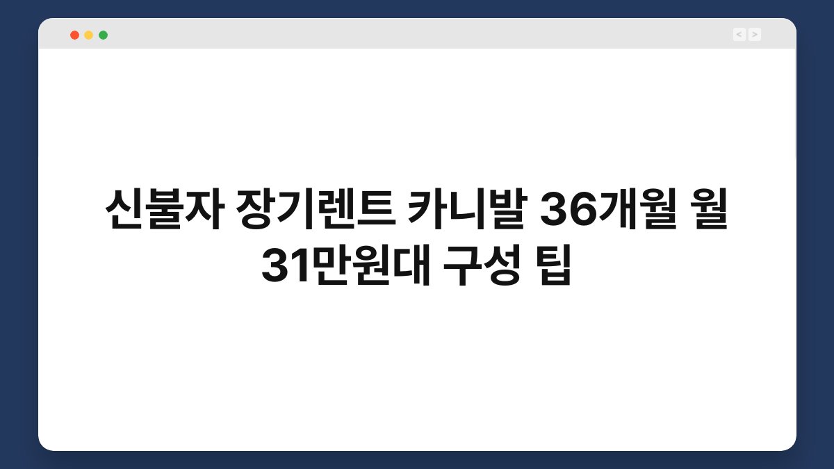 신불자 분들이 차량을 소유하고 싶을 때, 장기렌트는 매력적인 대안이 될 수 있습니다. 특히 카니발과 같은 인기 차량을 36개월 동안 월 31만원대의 합리적인 가격으로 이용할 수 있다면 더욱 좋겠죠. 하지만 신용 등급이 낮은 경우에는 선택의 폭이 좁아질 수 있습니다. 그런 분들을 위해 황제오토플랜이 제공하는 저신용 장기렌트 프로그램은 큰 도움이 될 것입니다. 이제 구체적으로 어떻게 활용할 수 있는지 알아보겠습니다.