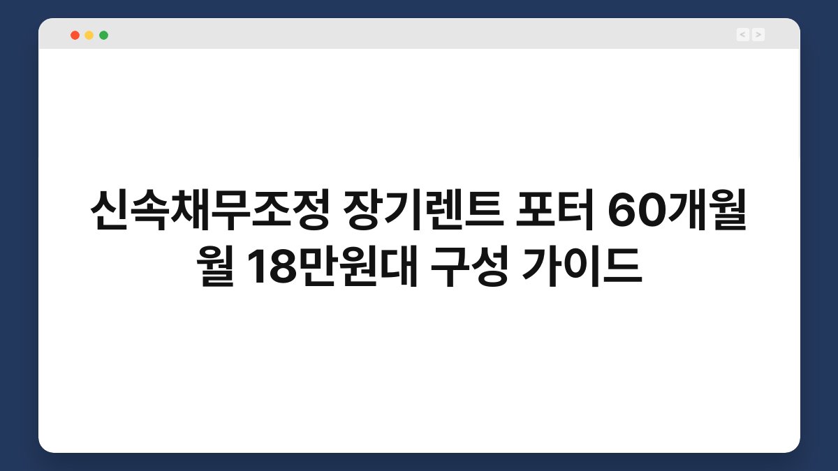 신속채무조정은 신용카드, 대출 등으로 인해 쌓인 부채를 조정하는 과정입니다. 이 과정을 통해 월 상환액을 줄이고, 신용 등급을 회복할 수 있습니다. 이러한 개선은 장기렌트 계약 시 긍정적인 영향을 미치며, 더 나은 조건으로 차량을 이용할 수 있게 됩니다.