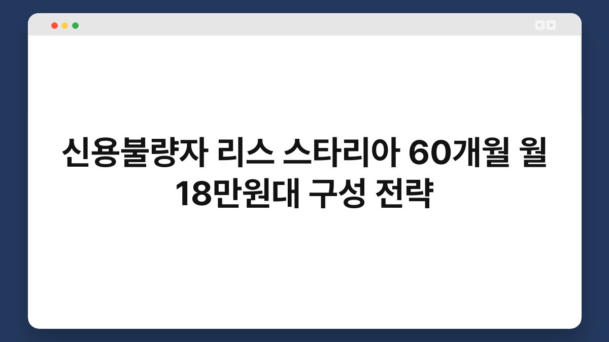 신용불량자에게는 리스가 매력적인 선택지입니다. 리스 계약은 소유권이 아닌 사용권을 부여하기 때문에, 신용 등급에 대한 부담이 적습니다. 또한, 월 18만원대의 가격으로 60개월 동안 스타리아를 이용할 수 있어 경제적인 부담을 덜 수 있습니다.