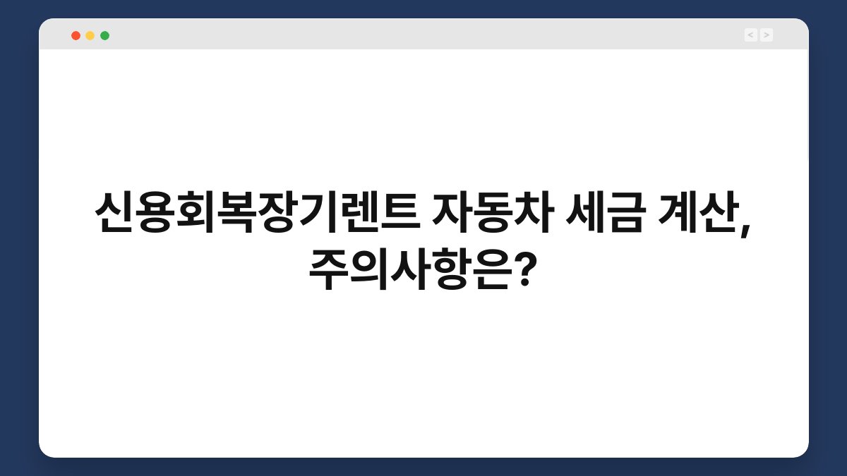 자동차를 장기 렌트하는 것은 많은 이들에게 경제적이고 실용적인 선택이 될 수 있습니다. 하지만 신용회복장기렌트와 관련된 세금 계산은 복잡할 수 있어요. 이 글에서는 신용회복장기렌트 자동차 세금 계산 시 유의해야 할 사항들을 살펴보겠습니다. 신용회복을 통해 차량을 소유하고자 하는 분들에게 유익한 정보를 제공할 예정이니, 끝까지 함께해 주세요.