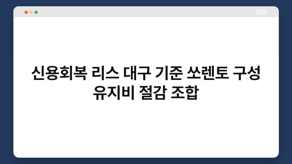 대구에서 신용회복을 통해 차량을 구입하고자 하는 분들에게 반가운 소식이 있습니다. 쏘렌토와 같은 인기 모델을 장기렌트나 리스로 이용하면 유지비 절감의 기회를 잡을 수 있습니다. 특히 황제오토플랜을 통해 차량을 선택하면, 신용 등급에 대한 부담 없이도 원하는 차량을 소유할 수 있는 방법을 제시합니다. 이 글에서는 대구에서 쏘렌토를 중심으로 한 신용회복 리스의 이점과 유지비 절감을 위한 조합을 살펴보겠습니다.