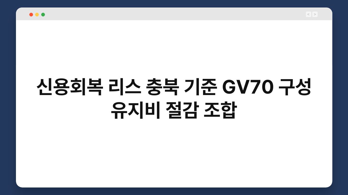 신용회복이 필요한 분들에게는 차량 리스가 큰 도움이 될 수 있습니다. 특히 충북 지역에서 GV70을 선택하면, 고급스러운 주행 경험과 함께 유지비 절감 효과를 누릴 수 있죠. 이 글에서는 신용회복과 리스의 조합이 어떻게 여러분의 경제적 부담을 덜어줄 수 있는지, 그리고 GV70의 매력과 유지비 절감 방법에 대해 살펴보겠습니다. 황제오토플랜과 함께라면 더욱 유리한 조건으로 차량을 이용할 수 있습니다.