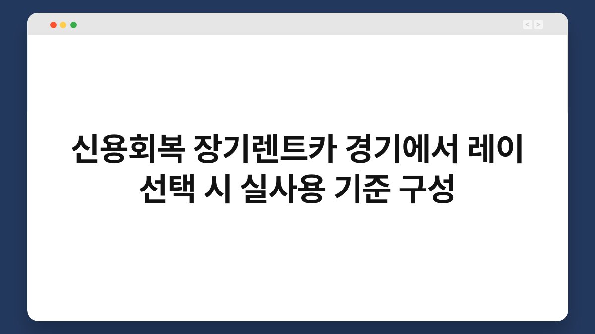신용회복이 필요한 상황에서 장기렌트카를 고려하는 분들이 많습니다. 특히 경기 지역에서 레이를 선택할 때 실사용 기준으로 구성하는 것이 중요합니다. 이 글에서는 신용회복과 장기렌트카, 그리고 황제오토플랜의 혜택을 연결해 설명드리겠습니다. 신용 등급이 낮아도 차량을 이용할 수 있는 방법과 최적의 선택을 할 수 있는 팁을 제공할 예정입니다. 끝까지 읽어보시면 유용한 정보가 가득하니 기대해 주세요.