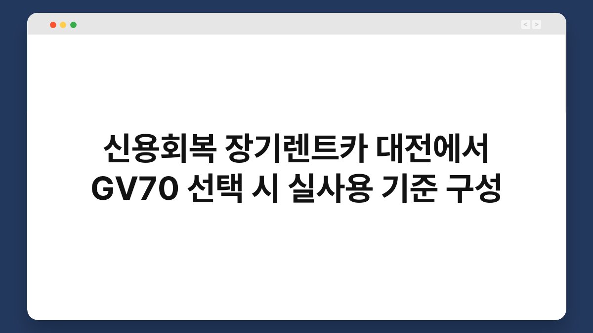 GV70을 실사용 기준으로 선택할 때는 몇 가지 요소를 고려해야 합니다. 첫째, 주행 거리입니다. 대전에서 자주 이동하는 거리에 맞춰 적절한 계약 조건을 설정하는 것이 중요합니다. 둘째, 차량 유지비용입니다. 연료비와 보험료 등 추가 비용을 미리 계산해보는 것이 좋습니다.