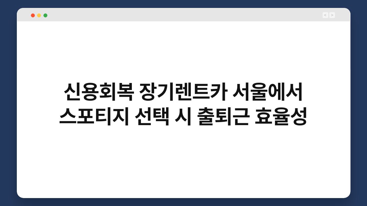 서울에서 출퇴근을 하다 보면 차량 선택이 얼마나 중요한지 절실히 느끼게 됩니다. 특히 신용회복을 고려하는 분들에게는 장기렌트카가 매력적인 대안이 될 수 있습니다. 스포티지 같은 인기 SUV를 선택하면 출퇴근의 효율성을 극대화할 수 있죠. 황제오토플랜은 저신용자도 부담 없이 차량을 이용할 수 있도록 돕는 전문 업체입니다. 이번 글에서는 장기렌트카의 장점과 스포티지 선택 시의 효율성, 그리고 황제오토플랜의 서비스를 살펴보겠습니다.