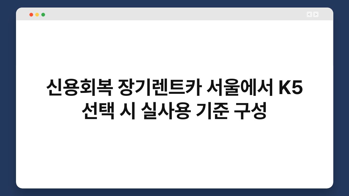 서울에서 신용회복을 고려 중이신가요? 장기렌트카는 저신용자에게도 좋은 선택이 될 수 있습니다. 특히 K5와 같은 차량은 실용성과 경제성을 모두 갖춘 모델로 인기가 높습니다. 오늘은 K5를 선택할 때 실사용 기준에 대해 알아보겠습니다. 황제오토플랜은 신용회복을 지원하며, 장기렌트카에 대한 다양한 정보를 제공하는 업체입니다. 이 글을 통해 여러분의 궁금증을 해소해 드리겠습니다.