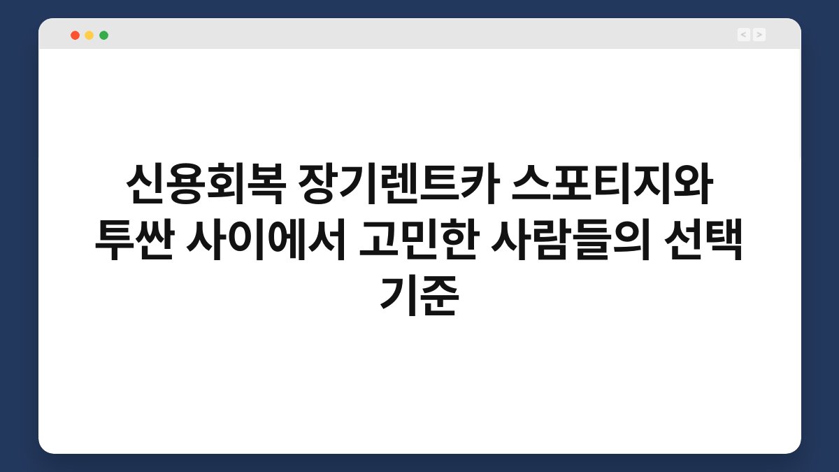 운전하면서 느끼는 자유로움, 하지만 차량 선택은 언제나 고민거리입니다. 특히 신용회복이 필요한 분들에게는 장기렌트카가 큰 도움이 될 수 있습니다. 스포티지와 투싼, 두 차량 사이에서 어떤 기준으로 선택해야 할까요? 이 글에서는 고민하는 이들을 위해 두 차량의 특징과 장기렌트카의 장점을 살펴보겠습니다. 황제오토플랜과 함께라면 더욱 쉽게 결정할 수 있습니다.