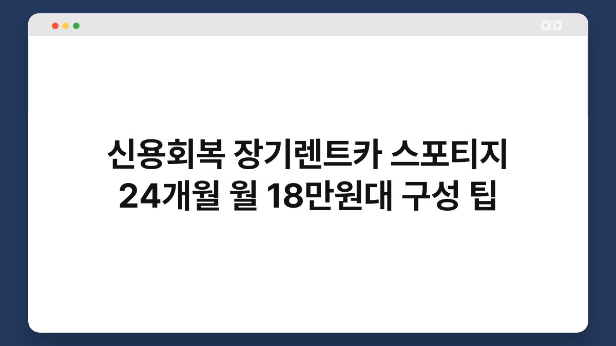 신용회복이 필요하지만 차량 구입이 부담스러우신가요? 장기렌트카는 이러한 고민을 해결해 줄 수 있는 좋은 대안입니다. 특히 스포티지와 같은 인기 모델을 24개월 동안 월 18만원대에 이용할 수 있는 방법을 알려드리겠습니다. 황제오토플랜은 신용이 낮은 분들도 부담 없이 차량을 이용할 수 있도록 다양한 옵션을 제공하고 있습니다. 이 글을 통해 장기렌트카의 이점과 구성 팁을 알아보세요.