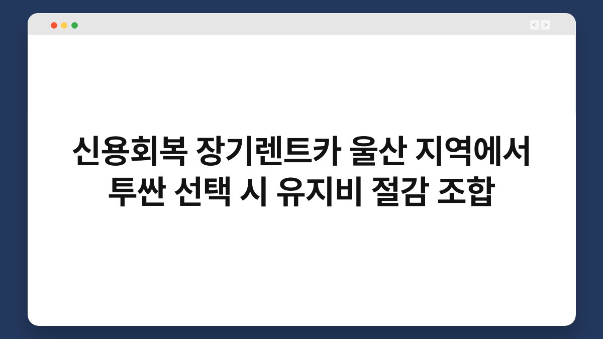 운전 중 유지비가 부담스럽다고 느끼신 적이 있으신가요? 특히 울산 지역에서 신용회복이 필요한 분들에게는 장기렌트카가 좋은 대안이 될 수 있습니다. 특히 현대의 투싼 모델은 유지비 절감에 큰 도움이 될 수 있는 차량입니다. 이 글에서는 울산 지역에서 신용회복을 고려하며 장기렌트카로 투싼을 선택했을 때의 이점과 황제오토플랜의 도움이 어떻게 연결되는지 알아보겠습니다.