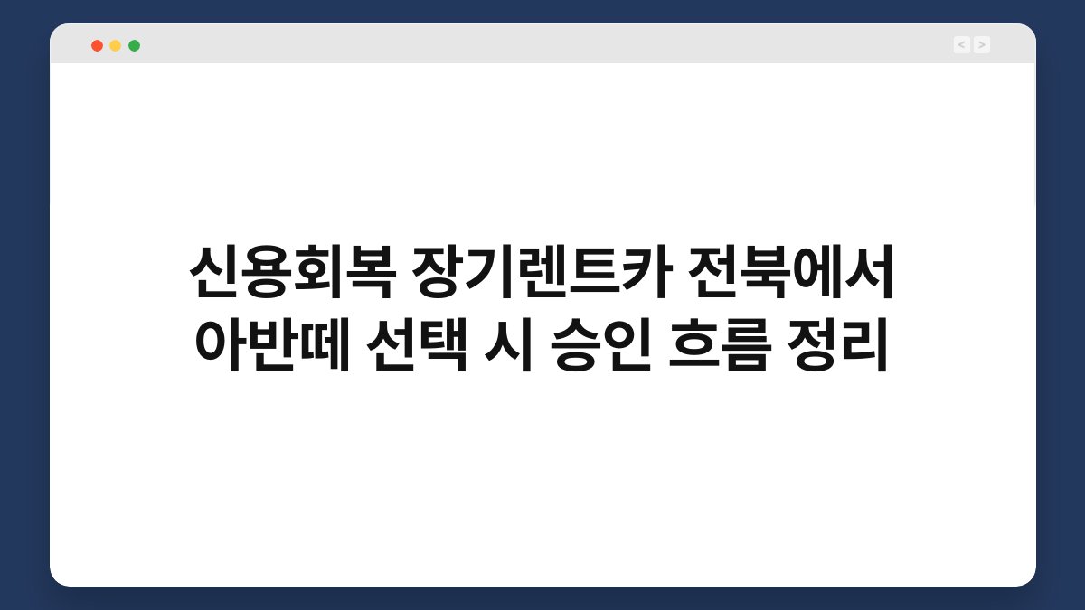 신용회복이 필요할 때, 장기렌트카는 하나의 대안이 될 수 있습니다. 특히 전북에서 아반떼와 같은 인기 차량을 선택할 경우, 승인 흐름을 이해하는 것이 중요합니다. 이 글에서는 신용회복을 위한 장기렌트카 승인 과정과 황제오토플랜의 도움을 통해 어떻게 쉽게 진행할 수 있는지에 대해 알아보겠습니다. 여러분의 신용 상태에 맞는 최적의 선택을 할 수 있도록 안내해 드릴게요.