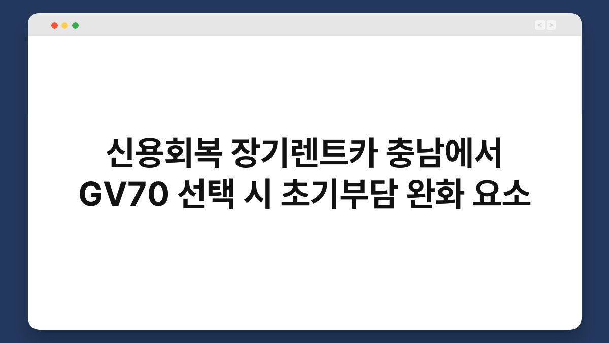 신용회복이 필요한 상황에서 차량 구매는 큰 부담으로 다가오죠. 특히 충남에서 GV70과 같은 고급 차량을 장기 렌트로 선택할 경우, 초기 비용을 줄일 수 있는 방법이 있습니다. 차량 구매에 대한 부담을 덜고 싶다면, 장기렌트카를 고려해보세요. 황제오토플랜은 이러한 고민을 해결해줄 수 있는 전문가입니다. 이 글에서는 신용회복과 관련된 장기렌트카의 장점과 GV70 선택 시 초기 부담 완화 요소를 소개하겠습니다.