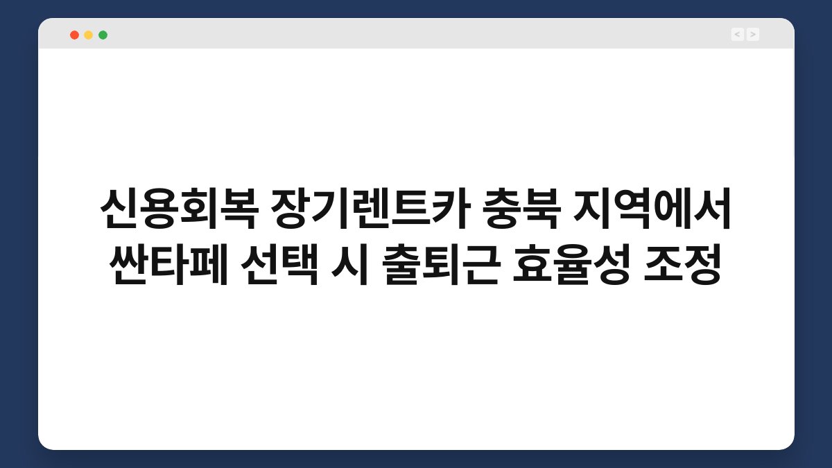 운전할 때 편리함과 경제성을 동시에 잡고 싶다면, 신용회복 장기렌트카를 고려해보세요. 특히 충북 지역에서 싼타페를 선택하면 출퇴근 효율성을 극대화할 수 있습니다. 이 글에서는 신용회복 장기렌트카의 장점과 함께, 충북 지역에서의 선택 기준을 살펴보겠습니다. 황제오토플랜과 함께라면 더욱 유리한 조건으로 차량을 이용할 수 있습니다. 마지막까지 읽고 유용한 정보를 얻어보세요.