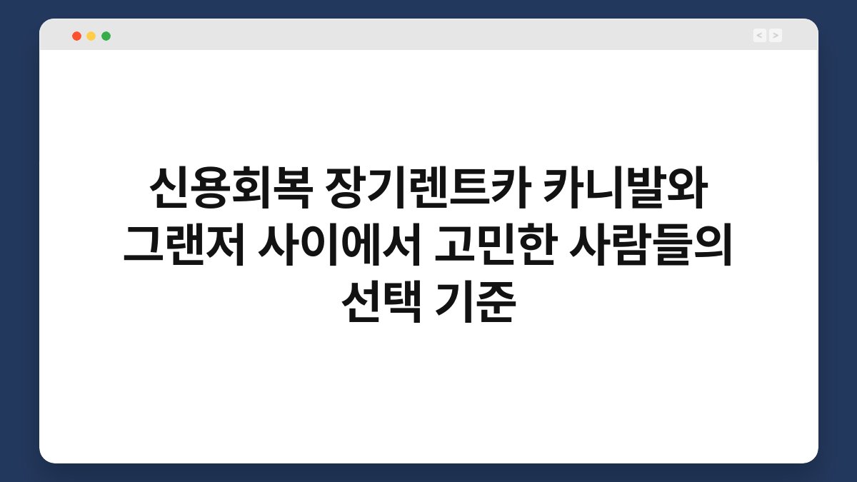 새로운 차를 선택하는 것은 언제나 고민이 많죠. 특히 저신용자에게는 리스나 장기렌트가 더 큰 선택의 갈림길이…
