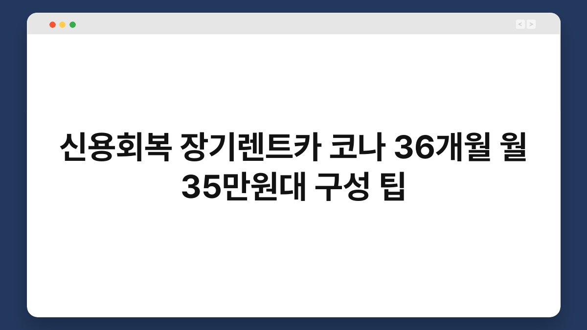 차량 구매를 고민하는 많은 분들, 특히 신용이 좋지 않거나 재정적으로 어려운 상황에 처한 분들은 장기렌트카를 고려해 보셨을 것입니다. 특히 신용회복 중인 분들에게는 장기렌트가 매력적인 대안이 될 수 있습니다. 오늘은 코나 모델을 기준으로 36개월 동안 월 35만원대에 장기렌트하는 방법과 관련된 유용한 팁을 소개하겠습니다. 또한, 황제오토플랜을 통해 보다 나은 조건으로 차량을 이용할 수 있는 방법도 함께 안내드리겠습니다.