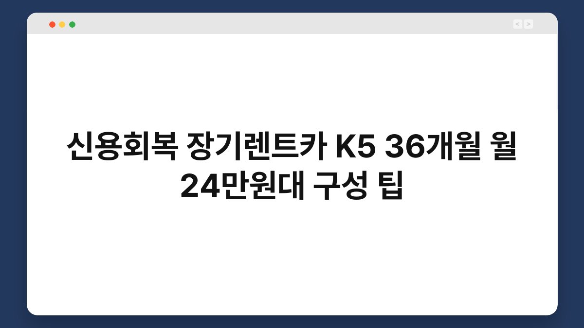 신용회복이 필요한 분들께 장기렌트카는 매력적인 선택이 될 수 있습니다. 특히 K5 모델을 36개월 동안 월 24만원대에 이용할 수 있는 방법에 대해 알아보겠습니다. 이 글에서는 신용회복과 장기렌트카의 장점, 그리고 황제오토플랜을 통해 어떻게 저렴하게 차량을 이용할 수 있는지에 대해 설명드릴 예정입니다. 궁금하신 분들은 끝까지 읽어보세요!