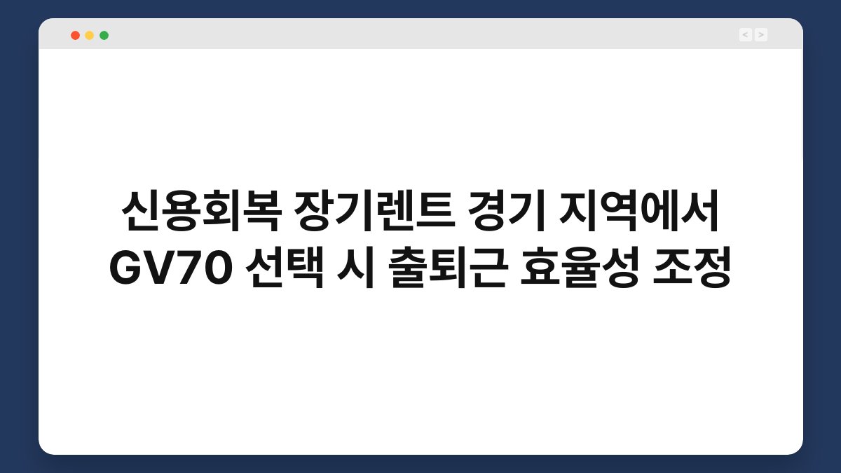 출퇴근은 매일 반복되는 일상 중 하나입니다. 하지만 이 과정에서 효율성을 높이는 것이 얼마나 중요한지 아시나요? 특히 경기 지역에서 GV70과 같은 고급 차량을 선택하면 출퇴근의 질이 크게 향상될 수 있습니다. 신용회복 장기렌트를 통해 부담 없이 차량을 이용할 수 있는 방법도 있습니다. 황제오토플랜은 이러한 선택을 더욱 쉽게 만들어 주는 전문 업체로, 여러분의 출퇴근을 더 편리하게 만들어 드립니다.