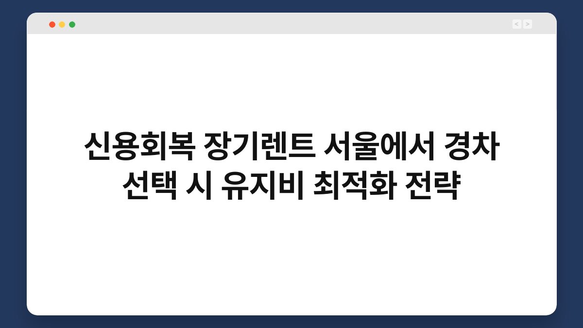 서울에서 경차를 장기렌트할 때, 신용회복을 고려하는 분들이 많습니다. 특히 유지비를 최적화하는 전략은 필수적이죠. 경차는 연비가 좋고 유지비가 낮아 경제적이지만, 선택 시 신용 등급에 따라 조건이 달라질 수 있습니다. 황제오토플랜은 이러한 고민을 해결해주는 전문 업체로, 신용회복을 위한 다양한 옵션을 제공합니다. 이 글에서는 서울에서 경차 장기렌트를 통해 유지비를 최적화하는 방법을 살펴보겠습니다.
