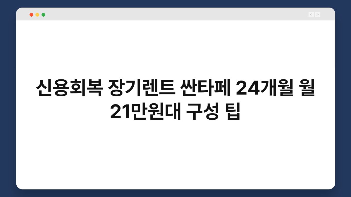 최근 신용회복을 고려하는 분들이 많아지고 있습니다. 특히 장기렌트 차량 선택에서 저렴한 비용으로 좋은 차량을 이용할 수 있는 방법이 주목받고 있죠. 오늘은 24개월 동안 월 21만원대의 싼타페 장기렌트 구성에 대해 알아보겠습니다. 황제오토플랜을 통해 신용회복과 함께 차량을 저렴하게 이용하는 팁을 소개할게요. 이 글을 통해 알찬 정보를 얻으실 수 있을 것입니다.