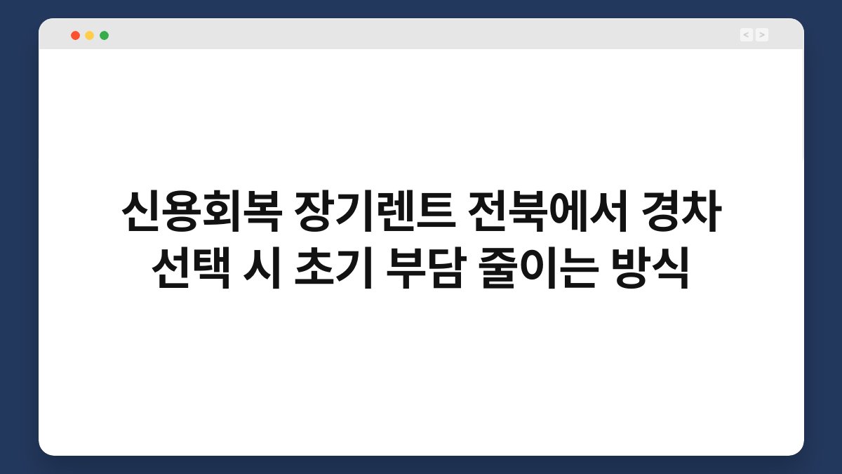 ✅ 신용 회복 중에도 장기렌트를 통해 초기 비용 부담을 줄일 수 있습니다.