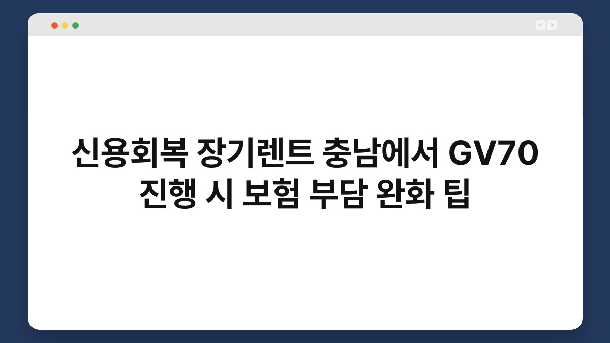 차량을 소유하는 것, 특히 신용이 부족한 분들에게는 부담이 클 수 있습니다. 하지만 충남에서 GV70을 장기렌트하면서 보험 부담을 완화할 수 있는 방법이 있습니다. 많은 분들이 신용회복을 위해 노력하는 가운데, 황제오토플랜이 제공하는 장기렌트 서비스는 신뢰할 수 있는 선택이 될 것입니다. 이 글에서는 신용회복과 장기렌트, 그리고 보험 부담을 줄이는 팁을 함께 살펴보겠습니다.