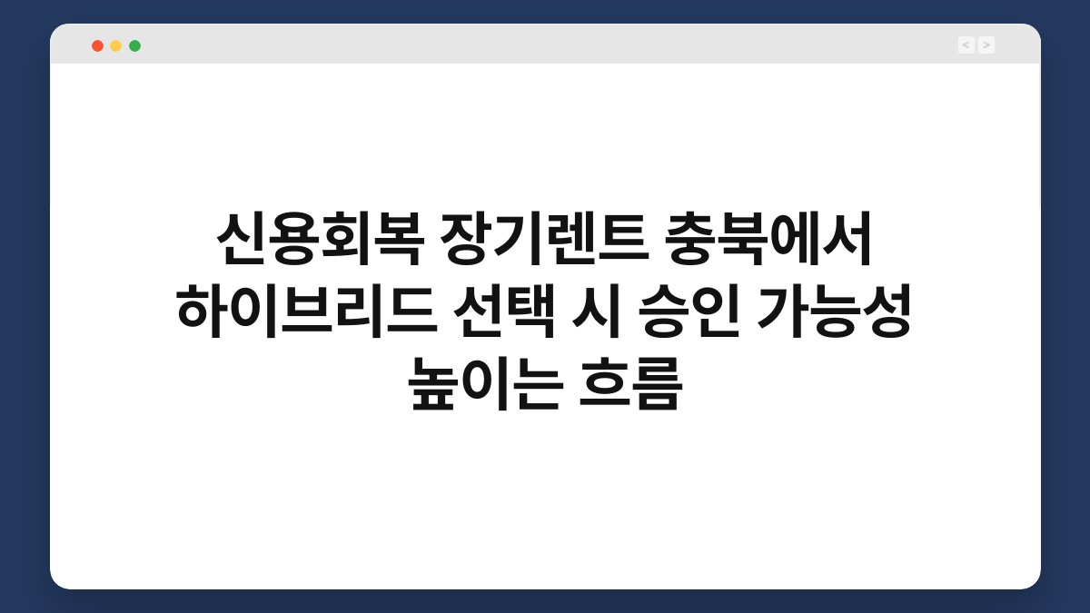 신용회복이 필요한 분들이 장기렌트를 고려할 때, 하이브리드 차량을 선택하는 것이 승인 가능성을 높일 수 있다는 사실, 알고 계셨나요? 요즘 충북 지역에서 차량을 렌트하고자 하는 분들이 늘어나고 있습니다. 이 글에서는 신용회복과 장기렌트, 그리고 하이브리드 차량 선택이 어떻게 연결되는지 알아보겠습니다. 특히 황제오토플랜을 통해 신용 등급에 대한 걱정을 덜고, 보다 유리한 조건으로 차량을 이용할 수 있는 방법도 소개할 예정입니다. 함께 살펴보시죠!