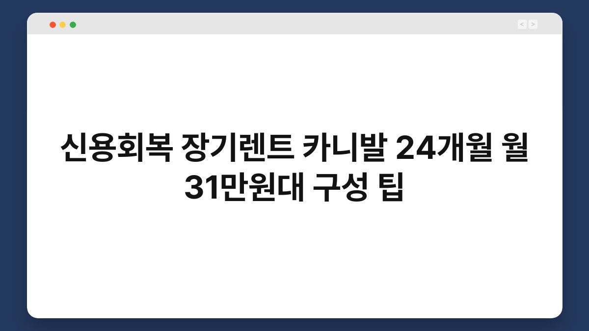 장기렌트에 대한 관심이 높아지고 있는 요즘, 신용회복을 통한 장기렌트 옵션이 많은 이들에게 희망이 되고 있습니다. 특히, 카니발과 같은 대형 차량을 24개월 동안 월 31만원대에 이용할 수 있는 방법이 있다는 사실, 알고 계셨나요? 이 글에서는 신용회복 장기렌트의 장점과 카니발을 포함한 차량 선택 시의 팁을 소개하겠습니다. 황제오토플랜과 함께라면 더욱 쉽게 원하는 차량을 이용할 수 있습니다. 그럼, 이 흥미로운 내용을 함께 살펴보시죠.