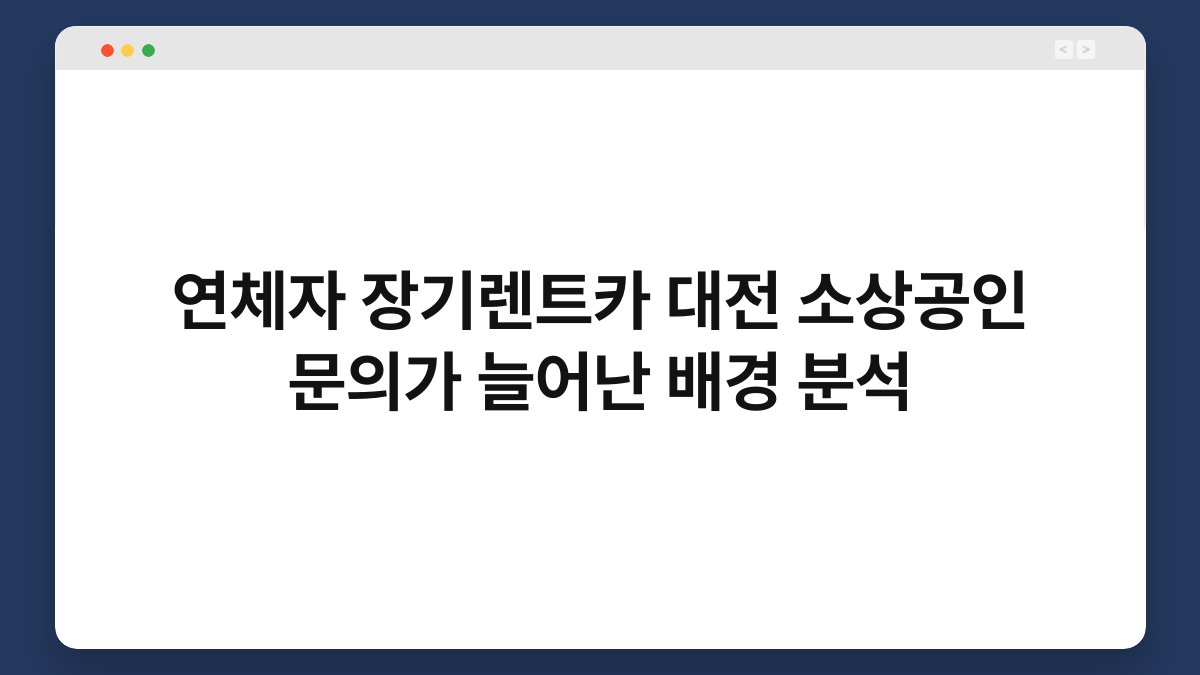 최근 대전 지역에서 연체자 장기렌트카에 대한 소상공인 문의가 급증하고 있습니다. 이는 경제적 어려움이 이어지는 가운데, 차량 이용의 필요성을 느끼는 이들이 많아졌기 때문입니다. 특히, 장기렌트는 초기 비용 부담이 적고, 유연한 계약 조건으로 소상공인들에게 매력적인 선택이 되고 있습니다. 황제오토플랜은 이러한 수요에 발맞춰 다양한 옵션을 제공하고 있어 많은 이들의 관심을 받고 있습니다. 이번 글에서는 이러한 배경을 분석하고, 장기렌트가 소상공인에게 어떤 도움이 되는지를 살펴보겠습니다.